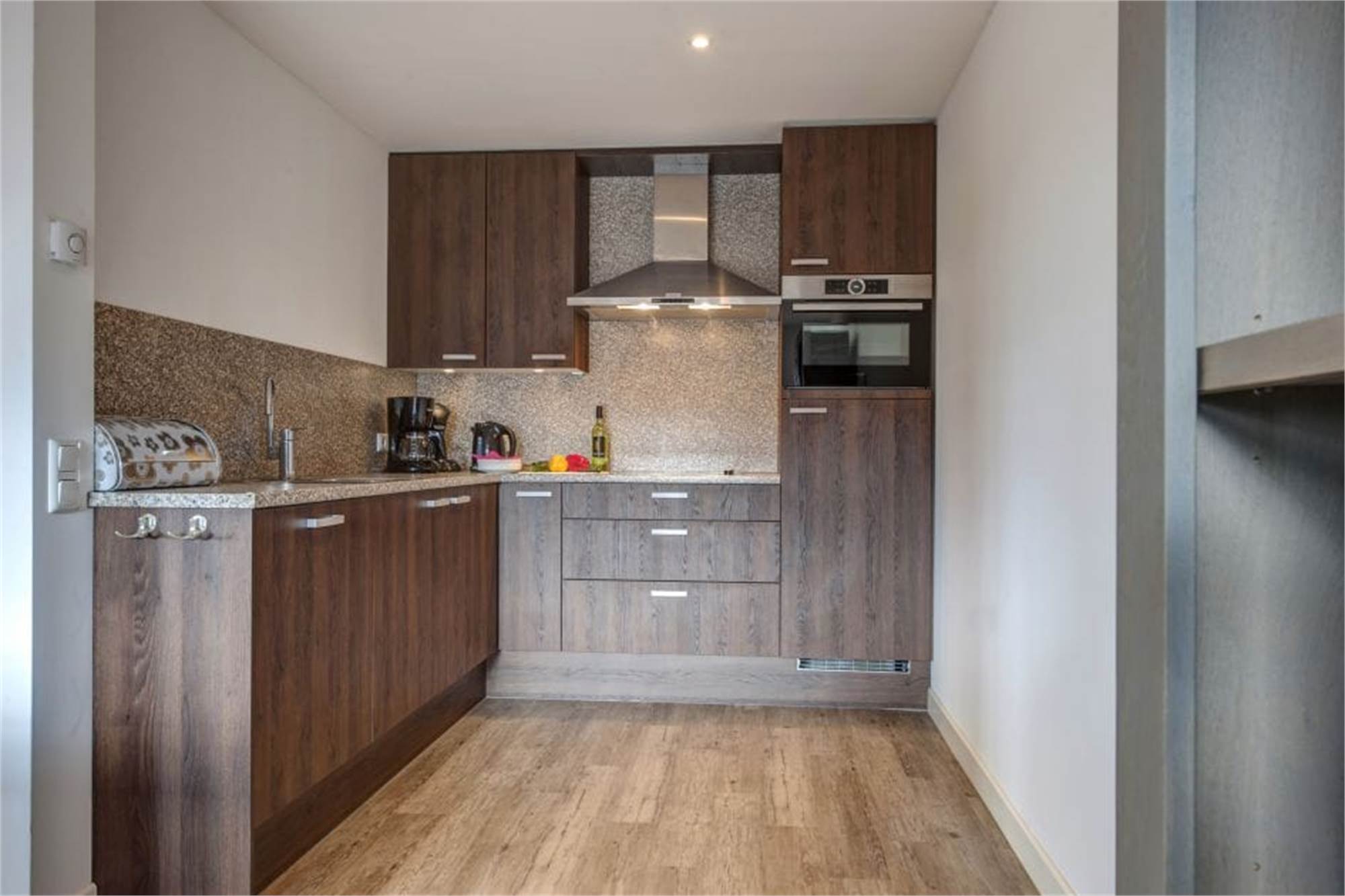 Erdgeschoss: Luxuriöse offene Küche mit u. a. Geschirrspüler und Kombi-Mikrowelle. Sehr großes Wohnzimmer mit Sitz- und Essecke mit Flügeltüren zur Veranda. Der Holzofen kann im Innenbereich als offener Kamin genutzt werden und im Außenbereich nur als Grill.