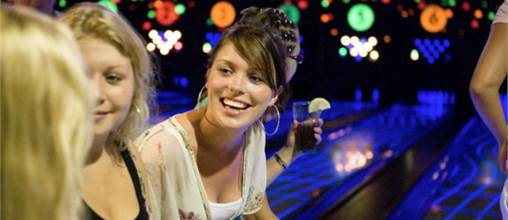 Genießen Sie ein köstliches Getränk, während Sie versuchen, einen Strike auf unserer Bowlingbahn zu werfen. Die Bowlingbahn ist ganz im Diskofieber mit Musik und Diskolichtern.
