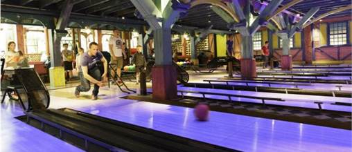 Reservieren Sie eine Kegelbahn und fordern Sie Ihre Mitspieler in geselliger Runde bei einem Getränk heraus.