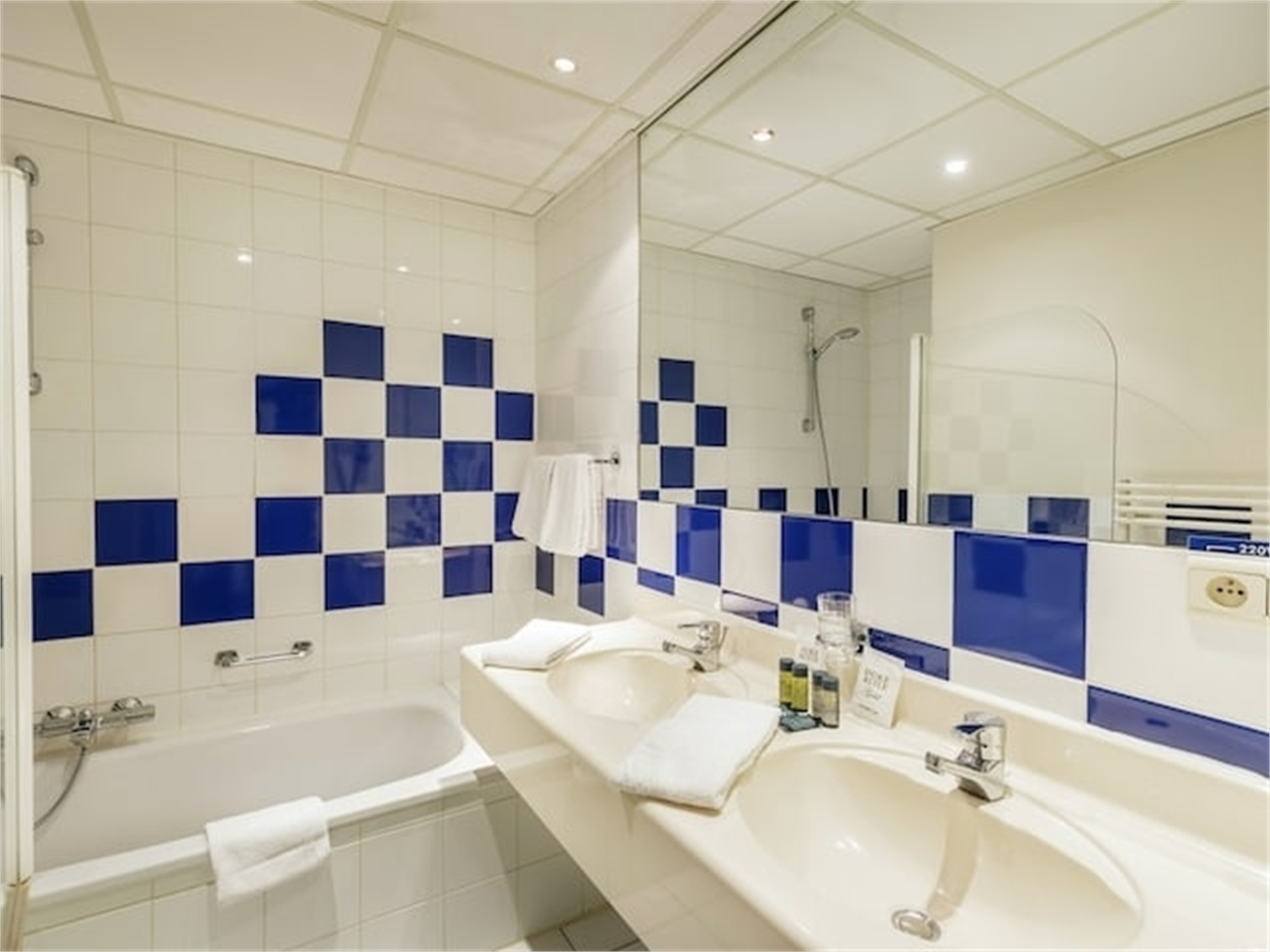 • 1 avec sèche-cheveux, double lavabo, douche dans la baignoire