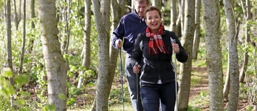 Par rapport à la marche régulière, la marche nordique (marche accélérée avec des bâtons) vous permet de solliciter tous les muscles du corps : triceps, biceps, épaules, abdominaux,...