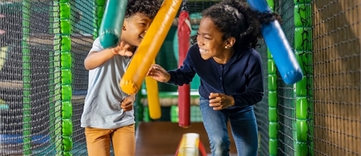 L'univers de jeux indoor BALUBA regorge d'espaliers, de canons à balles de mousse et d'autres jeux que vos enfants vont adorer. Pendant que les enfants jouent, les parents se relaxent agréablement sur la terrasse.