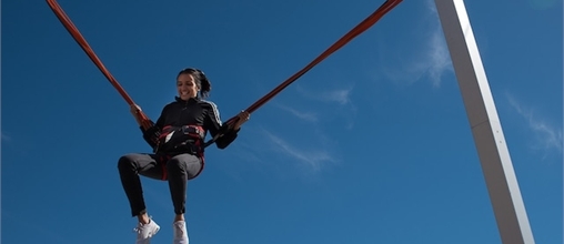 L'Elasto Trampoline est un mélange de saut à l'élastique et de trampoline. Résultat : vous pouvez sauter très haut et même faire des saltos, en toute sécurité. Amusant pour les adultes comme pour les enfants.